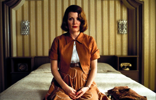 1949: Laura Brown, casalinga incinta, vuole preparare una festa per il marito, ma non riesce a staccare gli occhi dal romanzo che sta leggendo, Mrs. Dalloway. Ai giorni nostri: Clarissa Vaughn intende dare un party per celebrare l’amico Richard, un famoso scrittore che sta morendo di Aids. Queste due storie sono profondamente legate a quella di un’altra donna, Virginia Woolf, intenta a scrivere Mrs. Dalloway. Nella magnifica pellicola di Stephen Daldry, che avrebbe probabilmente meritato la statuetta al miglior film agli Oscar di quell’anno, Julianne affiancata da due altre fuori classe come Meryl Streep e Nicole Kidman, si immedesima perfettamente nel ruolo della casalinga frustrata, influenzata dal romanzo capolavoro di Virginia Woolf, La signora Dalloway, e allo stesso tempo aspirante suicida interrogatasi sulla futilità della sua vita.