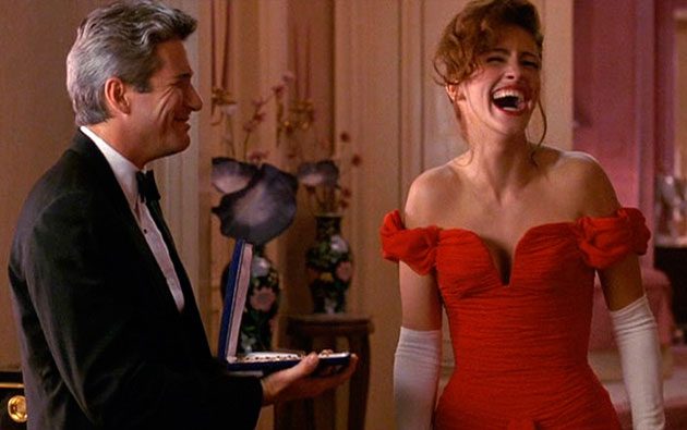 Edward Lewis (Gere) è uno squalo della finanza. Una sera, a Hollywood, conosce casualmente Vivian Ward (Roberts), una prostituta. Lei ha bisogno di soldi e lui ha bisogno di una donna che lo accompagni nei suoi pranzi di lavoro. È un rapporto puramente commerciale, ma il cuore di pietra di Edward comincia piano piano a sciogliersi. Una vera e propria favola moderna che oggi può già vantare lo status di ‘classico del cinema moderno’. Film semplice, divertente e godibilissimo, una bella storia d’amore che regala emozioni e sorrisi. Julia mette in luce il suo lato frivolo e la sua grandissima capacità di essere una vera e propria mattatrice nelle commedie, genere di cui sarà la regina incontrastata per tutta la decade. Il regista offrì la parte prima a Karen Allen, Meg Ryan, Michelle Pfeiffer, Jennifer Jason Leigh e Valeria Golino e quando tutte le attrici rifiutarono il ruolo, il regista decise di affidare la parte alla allora poco conosciuta Julia Roberts che ottenne una seconda nomination agli Oscar ed il secondo Golden Globe, questa volta come migliore attrice in un film commedia.