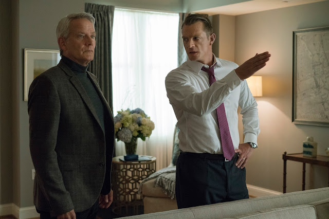 La scalata al potere del Presidente Frank Underwood (Kevin Spacey) e della ambigua moglie Claire (Robin Wright) sarà questa volta accompagnata da due new entry: debuttano nella quinta stagione anche Campbell Scott e Patricia Clarkson, presenti nelle due nuove still di sotto.