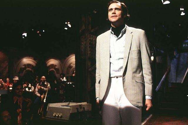 Andy Kaufman è un comico che ha attraversato l’America proponendo una comicità surreale. Magistrale nel raggirare il pubblico riusciva a provocare fragorose risate e imbarazzanti silenzi con le sue performance. Sia che proponesse una comicità per bambini o che sfidasse le signore in incontri di wrestling era un personaggio discusso e oltre ogni schema. Anche nella vita privata, Andy non riusciva a uscire dal suo personaggio. Qui ancor più che in The Truman Show, Carrey dimostra il suo straordinario talento, in un ruolo di notevole difficoltà. Come in passata ha coinvolto il suo pubblico in grasse risate, qui lo commuove. Il film di Milos Forman gli frutta il suo secondo Golden Globe.