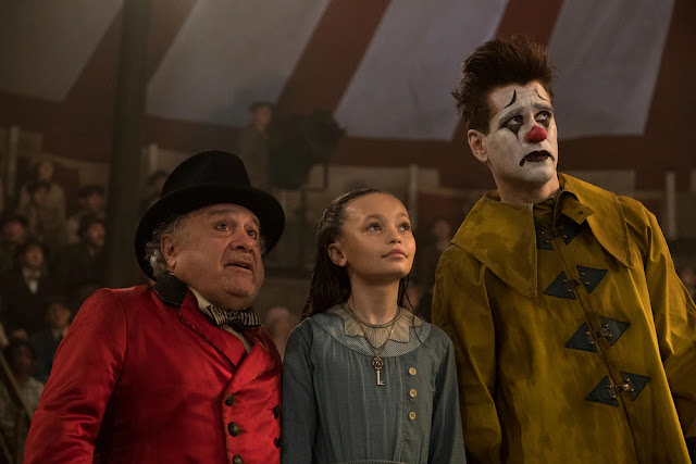 Il Dumbo di Burton è probabilmente il miglior lungometraggio diretto dal regista americano degli ultimi, incostanti dieci anni a questa parte; lungi dall’essere un ritorno alla forma (è un canonico live-action perfettamente inscritto nei codici del linguaggio Disney, come dicevamo), è a tutti gli effetti un atto di amore incondizionato verso la poetica dei freak e degli emarginati che da sempre ha permeato la filmografia del cineasta; a tessere l’ode ai dimenticati del regista è la lettera d’amore verso la vita e gli universi paralleli del circo. Ricettacolo di stranezze ed unicità , il circo è il luogo cinematografico che più ha toccato Burton nell’inconscio sin dagli esordi sul grande schermo, fino alle incursioni più recenti ( e qui i paralleli di concetto con il cinema circense di Fellini si sprecherebbero). Nella contrapposizione tra vita circense e manifattura posticcia della “Dreamland” di Vandermere (ma si può leggere l’evanescente Wonderland, addirittura l’effimera Disneyland), è lì che si  innalza in volo il sogno conciliante della restituzione di una famiglia, unione di più elementi dove poter veramente essere sé stessi , senza il timore del giudizio o della manipolazione. Una madre, un circo, una famiglia.