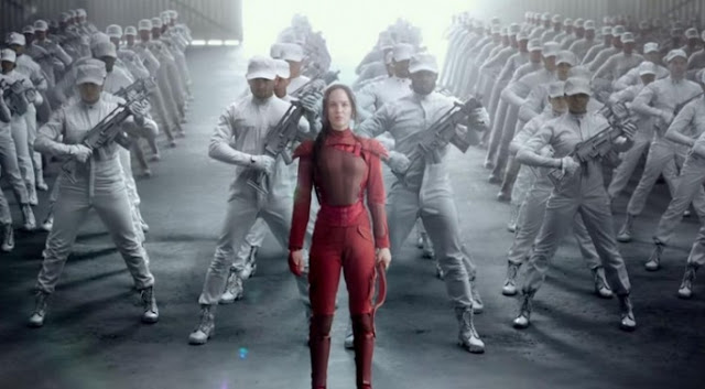 Senza mezzi termini, Il Canto della Rivolta Parte 2 è un film di guerra. Non ci sono dubbi, e non ci sono equivoci possibili. Chi fin dal primo film ha etichettato questa saga come il clone americano di Battle Royale, e liquidata con superficialità come l’ennesimo spettacolo violento fine a se stesso, ora si deve davvero nascondere dietro l’angolo: se il film asiatico infatti proponeva una riflessione sulla violenza nella società moderna, specialmente giovanile, Hunger Games fin da subito ha lavorato su più livelli, avendo in comune soltanto la premessa (non che uno sia migliore dell’altro, dico solo che sono film diversissimi). E’ comunque del tutto irrilevante fare paragoni ora, semmai quello che conta è capire come le pagine di Suzanne Collins prima, ed i film poi, abbiano abbracciato la distopia fantascientifica più classica per fare un discorso politico. Non è forse il caso di scomodare George Orwell, ma siamo comunque in quei territori, che si voglia ammettere o meno.