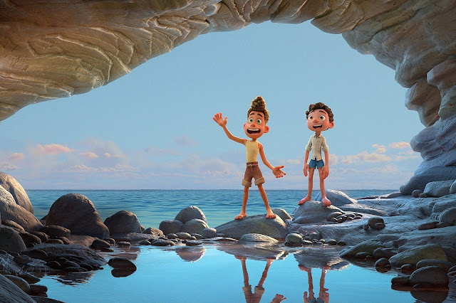 Perché è lecito aspettarsi il capolavoro annunciato dalla casa di produzione che ha regalato al suo pubblico opere come Up, Wall-E, Toy Story, Inside Out ed altri. Nel film d’animazione ad ambientazione ligure, si vola invece ragionevolmente basso, tutto è costruito e raccontato “a livello di bambino”, nel linguaggio utilizzato dai suoi piccoli protagonisti fino al dipanamento della narrazione. Impossibile poi dribblare tout court le infinite citazioni ed omaggi alla cultura e alla lingua italiana; per lo spettatore nostrano, vedere Luca è vedersi rispecchiati in un trionfo di cliché e stereotipizzazioni che potrebbero risultare macchinose per il target italiano, ma che invece gradevolmente si amalgamano con grazia nel racconto, al ritmo di ballate pop estive firmate dalla voce nostalgica e frizzante di Edoardo Bennato.